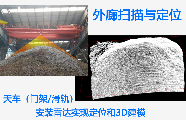 自動定位車輛位置,智能識別車廂邊界;實時掃描物料外廓,指引天車自動作業。