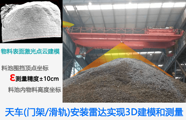 將激光檢測器安裝在天車上,通過天車的移動,對物料進行掃描,實現(xiàn)3D建模和測量,將測量結(jié)果通過輸出端設備進行展示。